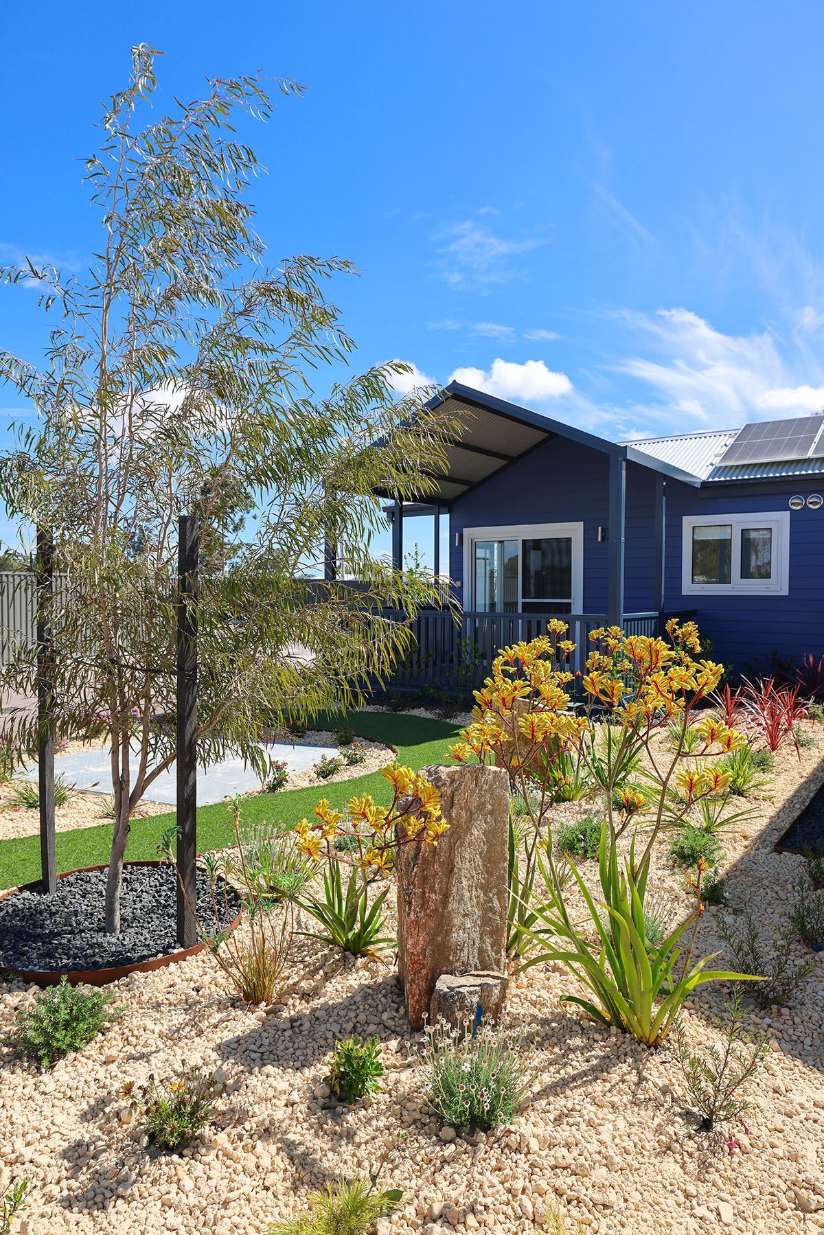†All-inclusive Providence specifications such as stone bench tops, high-end appliances, insulation, acoustic treatment, solar & battery pack, inverter, air conditioning, Wi-Fi, and complete low maintenance and water friendly landscaping package.